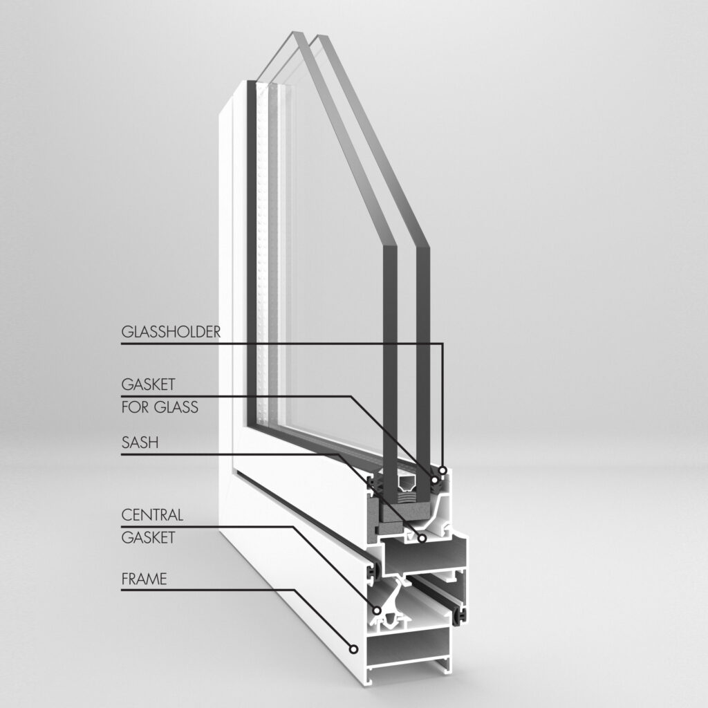 Алуминиева система с конструктивна ширина от 60мм. (външни стени с дебелина 1,6 мм.) и широчина на прекъснатият термо мост от 20 мм. Оборудване с двоен стъклопакет или термопанел с ширина от 24 мм. до 36 мм. и с уплътнения по касата, крилото и трето в средата за повишена защита от вятър, дъжд и шум. Предлага шумоизолация от 47 dB.