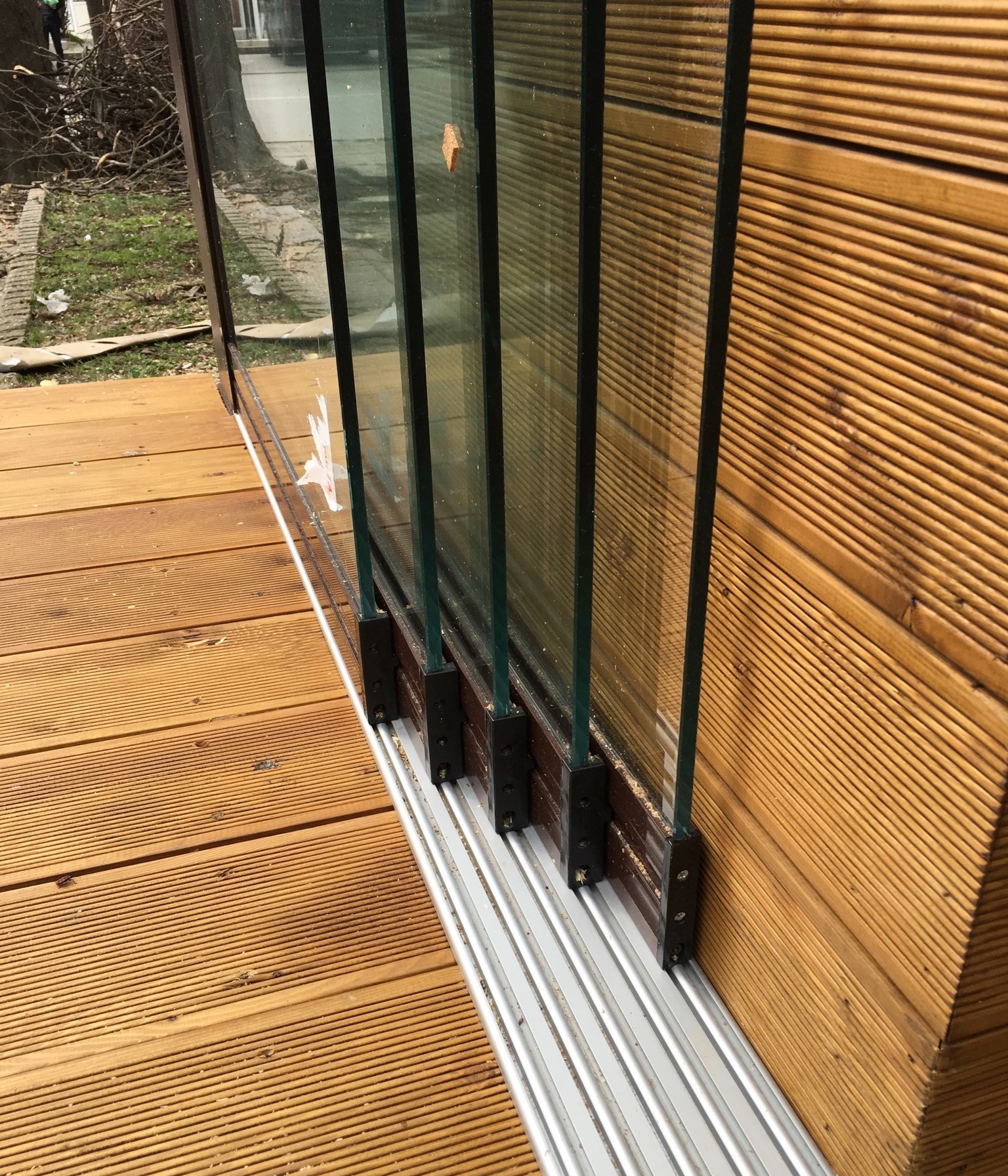 Стъклата са плъзгат по релса с канали като броя на каналите е в зависимост от броя на стъклата. Най-малката релса е с 3 канала. Пространството се разделя на равни сектори и всички стъкла отиват в левия или в десния край на рамката. Така пространството може почти напълно да се отвори.