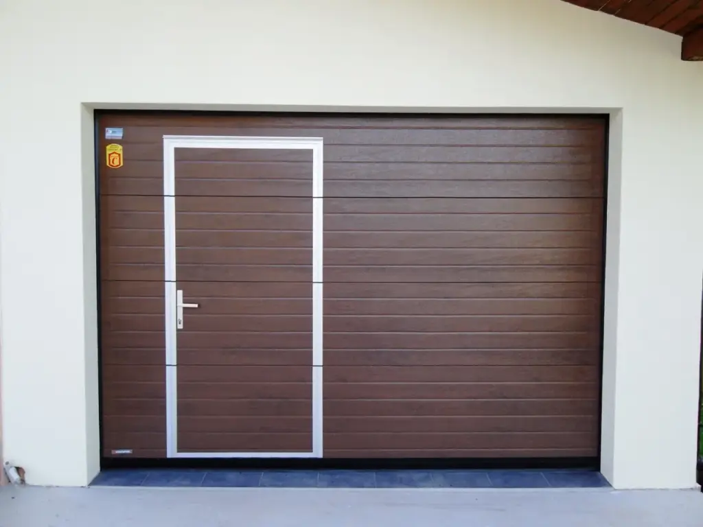 - Един от големите плюсове на секционни гаражни врати е, че могат да бъдат оборудвани по желание и с пешеходна врата, но не винаги ширината на паното ви позволява да зададете размера на нормална врата