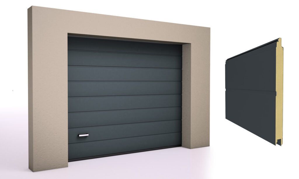 Дебелината на панелите е 40 мм и е пълна с изключително плътна полиуретанова пяна. При секционни гаражни врати няма нужда от термични мостове, защото панелите застават плътно в затворено положение.