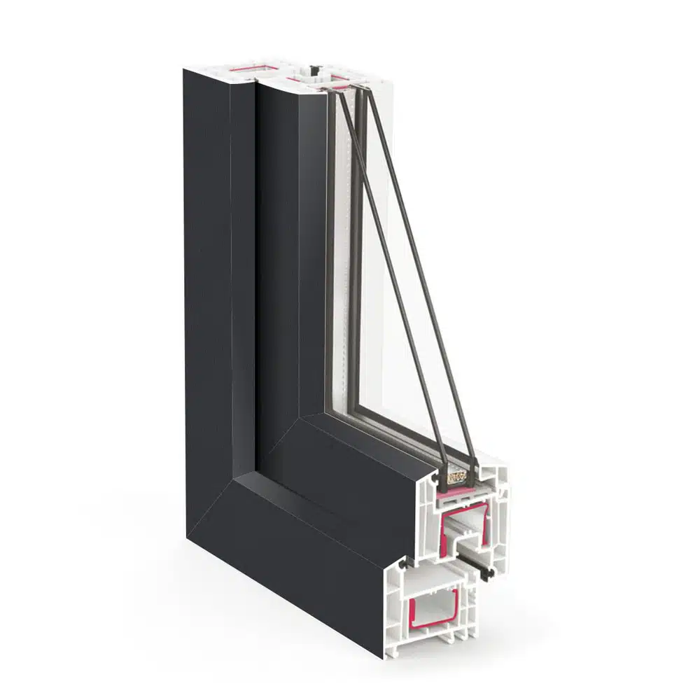 AluClip система, която предлага възможност за монтаж на алуминиева капачка от външната страна с цел разширяване на цветовите възможности, защита на външната страна на профила и комбиниране на здравината на алуминия с качествата и ценовата достъпност на PVC- то.